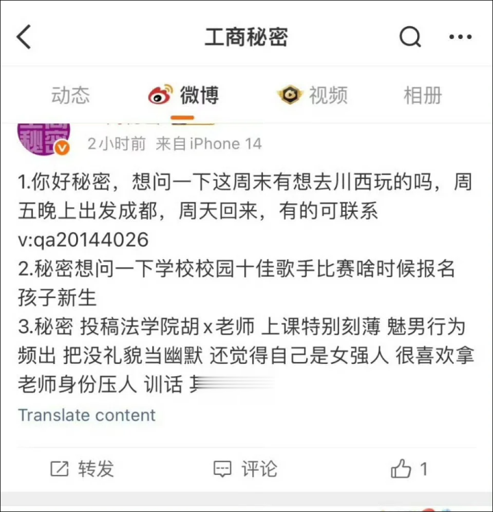 10月29日东方汇赢,一名大学生在社交平台吐槽,重庆工商大学法学院一老师上课刻薄、存在魅男行为,还常以老师身份压人。