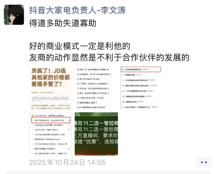 然而,抖音电商内部人士并不认可京东的表态,对外表示,“京东以上回应反而证实了京东主动限制商家在其他平台的自主经营权这一事实。此外,京东还以巨额罚款为威胁,禁止家居家电商家参与抖音电商的平台营销活动。”